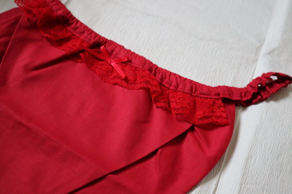 今回ははごろもショーツ椛(無地赤・クロッチ無し・フリフリタイプ・Lサイズ)を作りました。