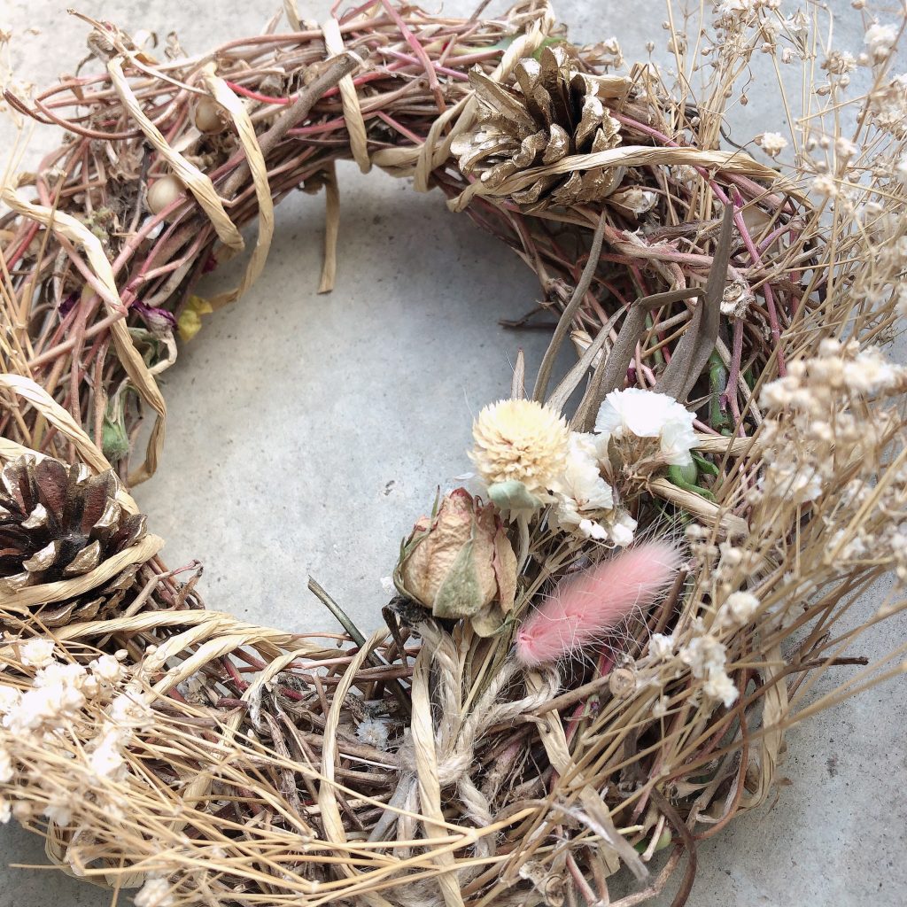 私は今日は家で一日過ごしましたが、外でリースを作っていました。