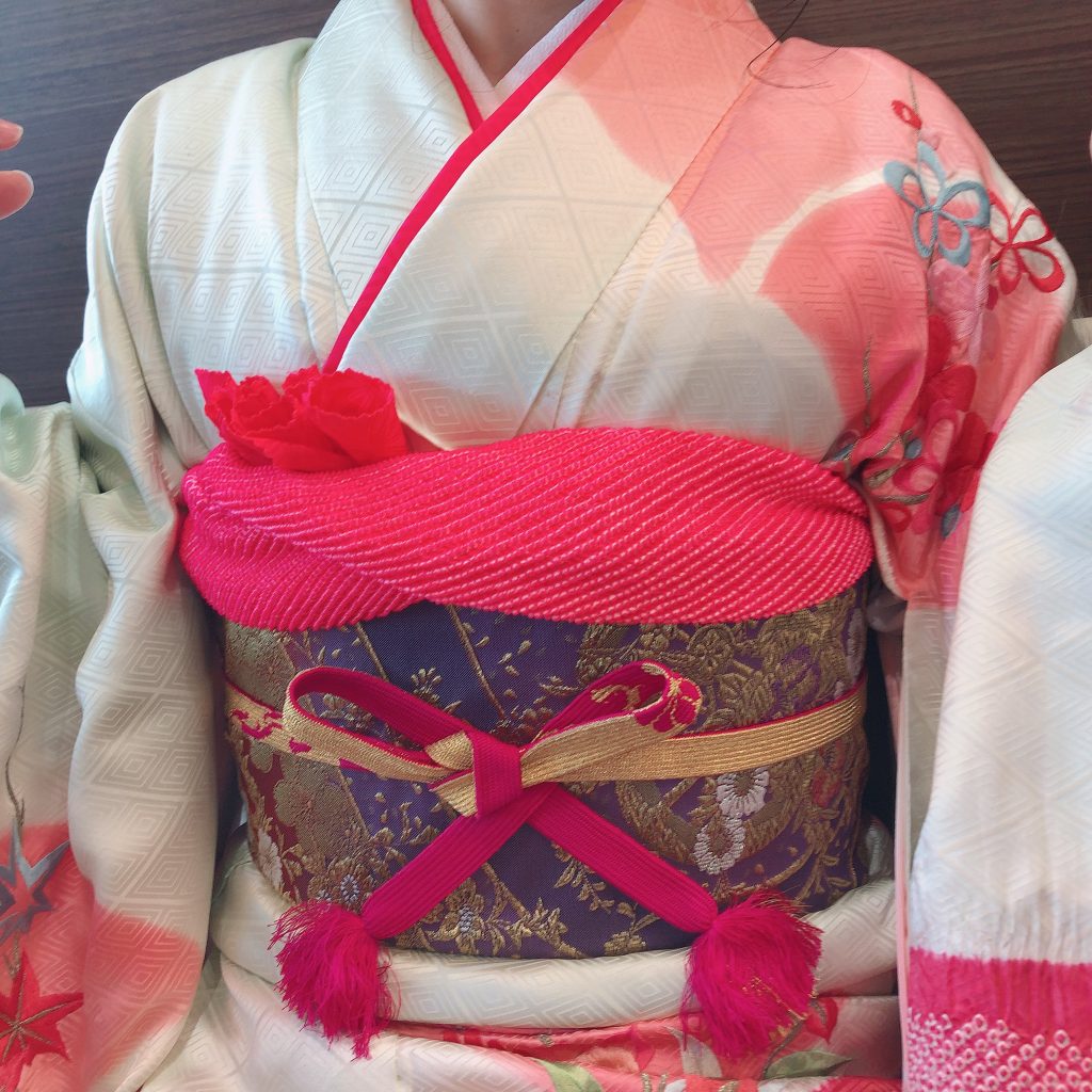 娘が着ている振袖は私の着付け練習用です。ちょっとお袖がとか、裾が‼️とかなっても気にならない様に、と、思いましたが、やっぱり母はきになったのでした😅