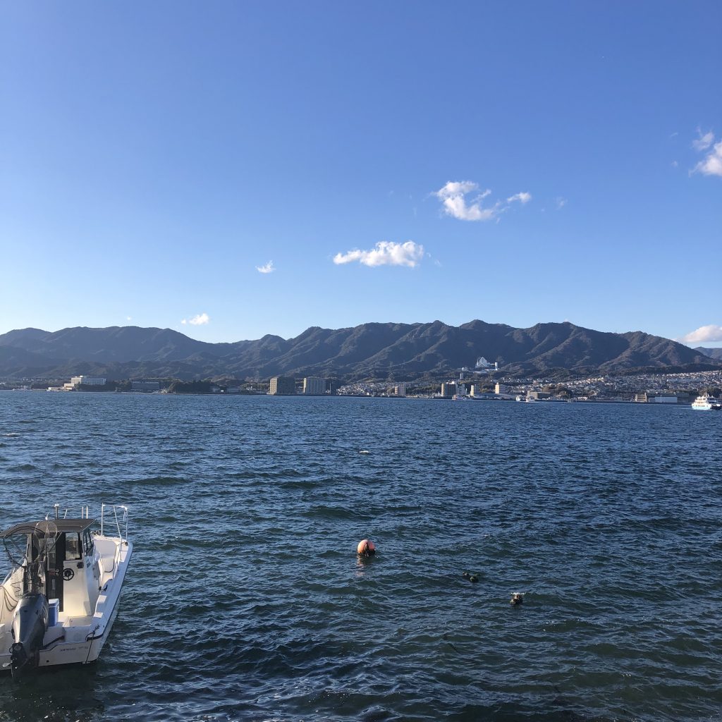 いつもは本土側から宮島を眺めていますが、今日は宮島から本土の眺め。すっきりと遠くまで見えてとても綺麗でした。