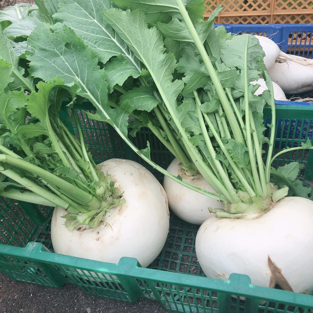 子どもの頭の大きさくらいあるカブや、抱えきれない程の大きさまで育った白菜、太い白ネギ、BIGサイズのおでん大根。