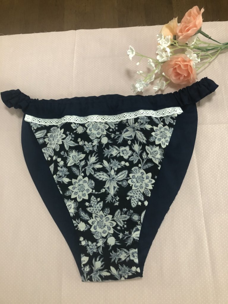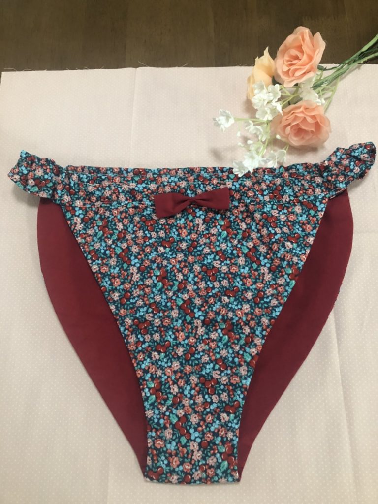 そして、型紙を使って作られた彩やかな小花柄の方は裏地と同色のちょこんとリボンとか、私すごく好み😘です。
