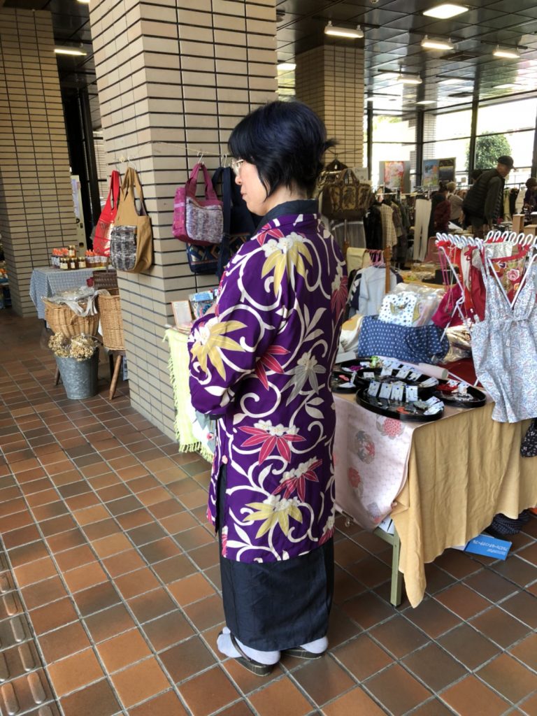 今日は動きやすい木綿の着物でした。洗える安心もあってか、ほんとにラクです。