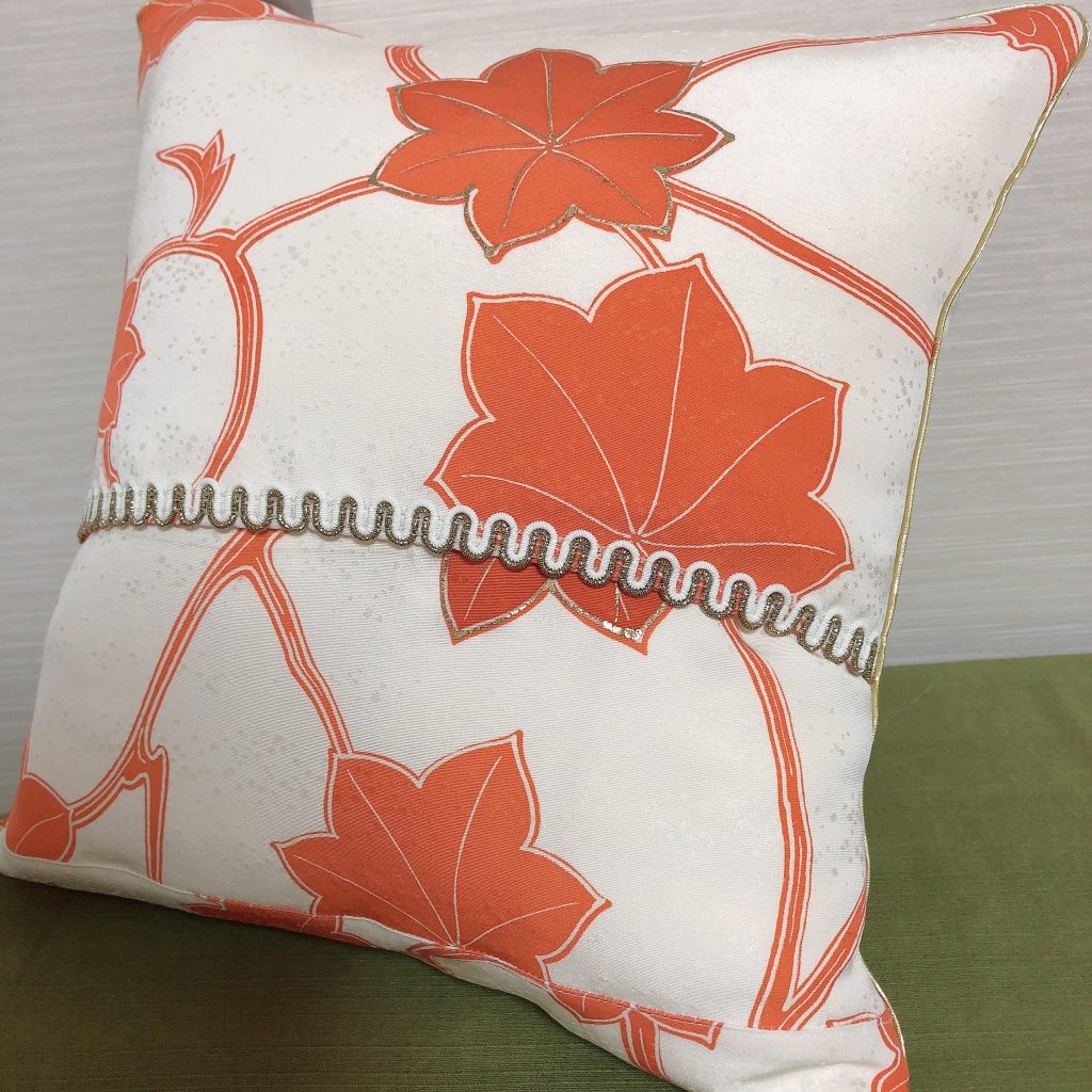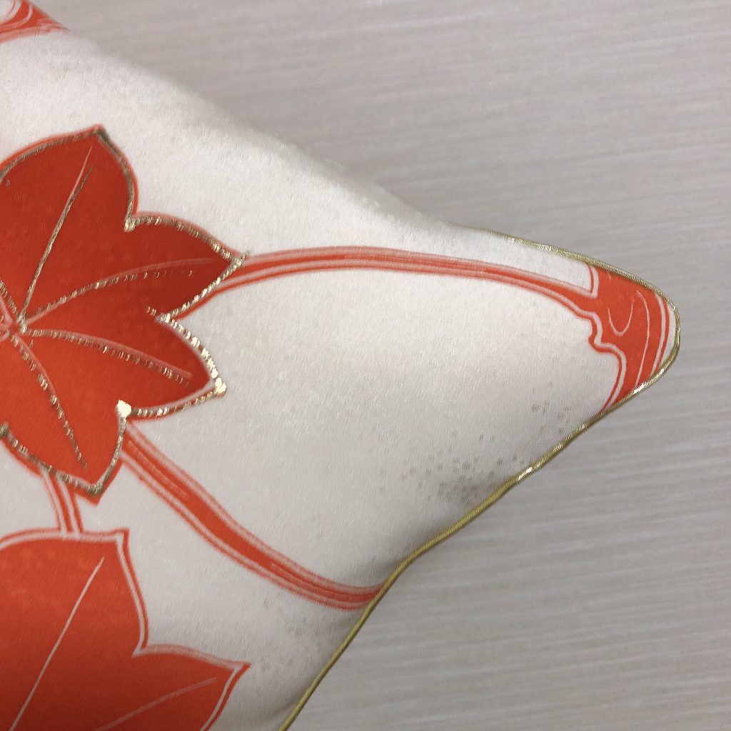同じ方からお預かりした喪服の裏地の絹が使えそうだったのでそちらを中綿を入れる生地に使って、クッションを作りました。