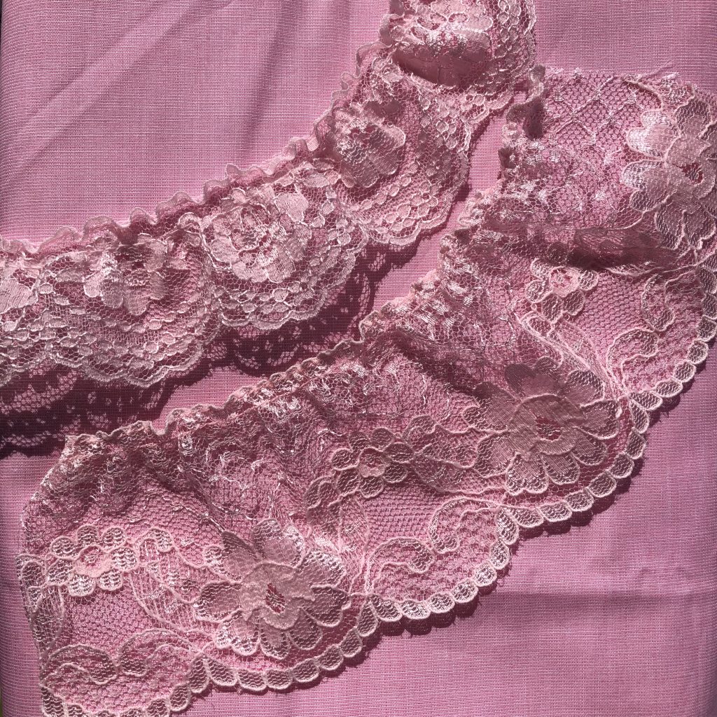 材料の中にあるピンクの大きめのレースは残すところあとショーツとブラ各1点分のみになりました。