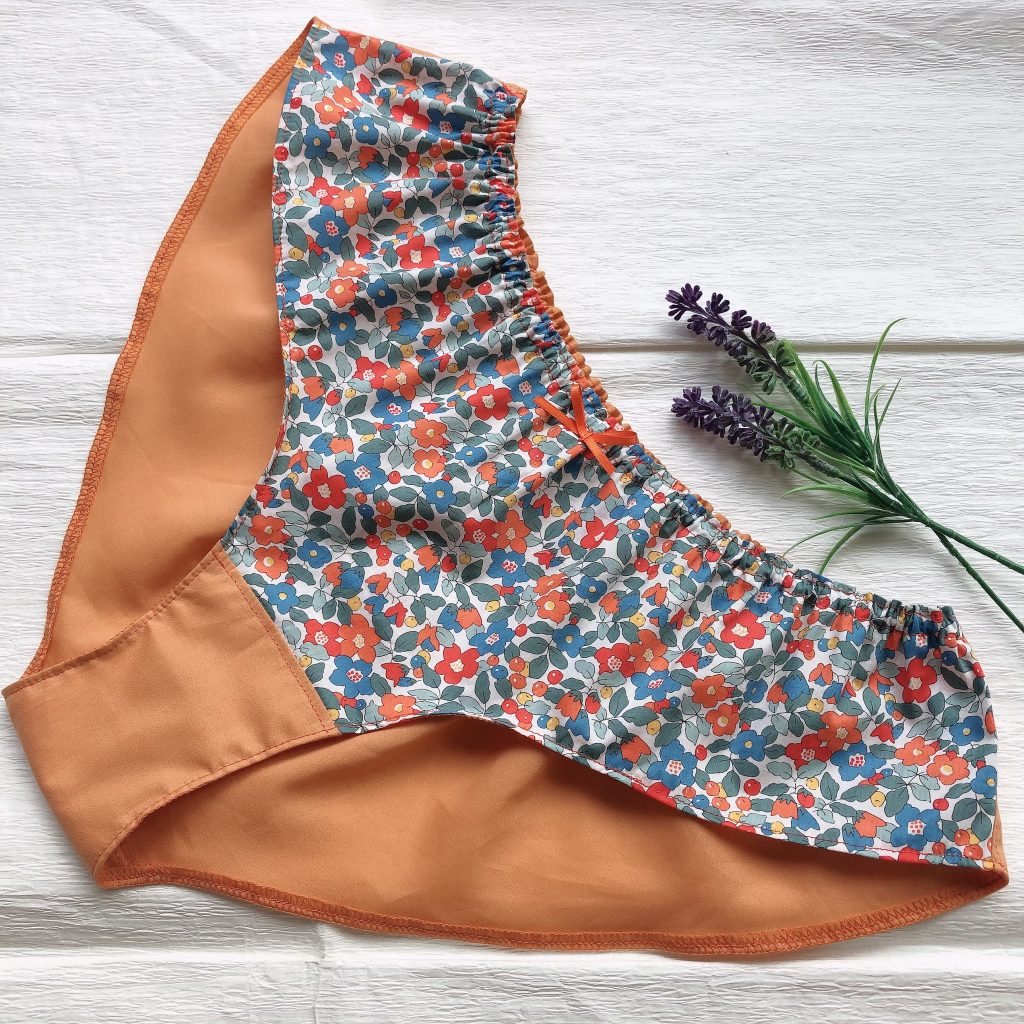 【受注生産】リラックスショーツ/はごろもショーツ椛 [すっきりタイプ] リバティ生地使用(ベッツィ ベリー オレンジ系)ホルダーなし HS004-S2104O | ハンドメイドマーケット minne