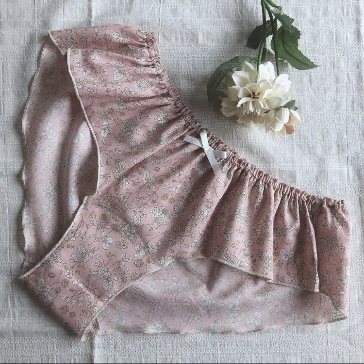 それからね、BASEショップやInstagramのはごろもランジェリージャパンで、岡山店のふみかさんがリバティのアンジェリカ・ガーラを使った作品の紹介をしてくれています。