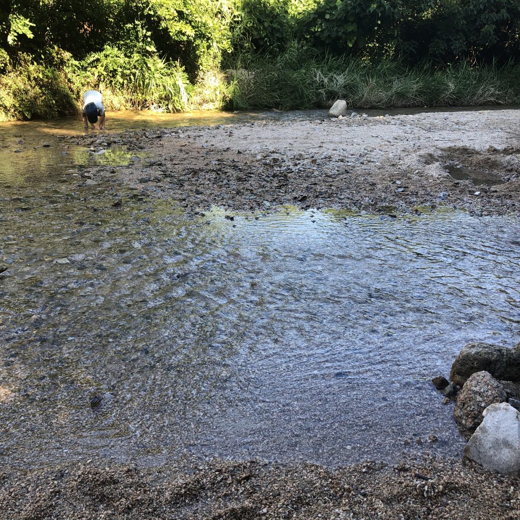 蝉の鳴き声と川のせせらぎだけが聞こえる