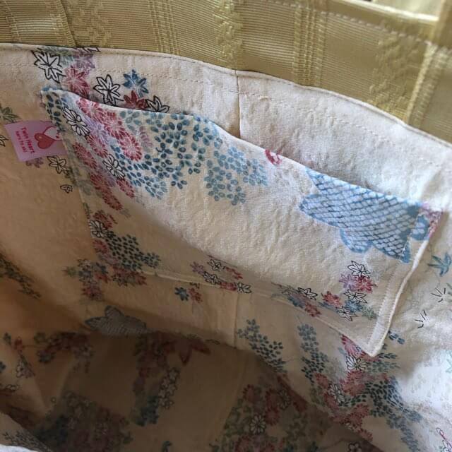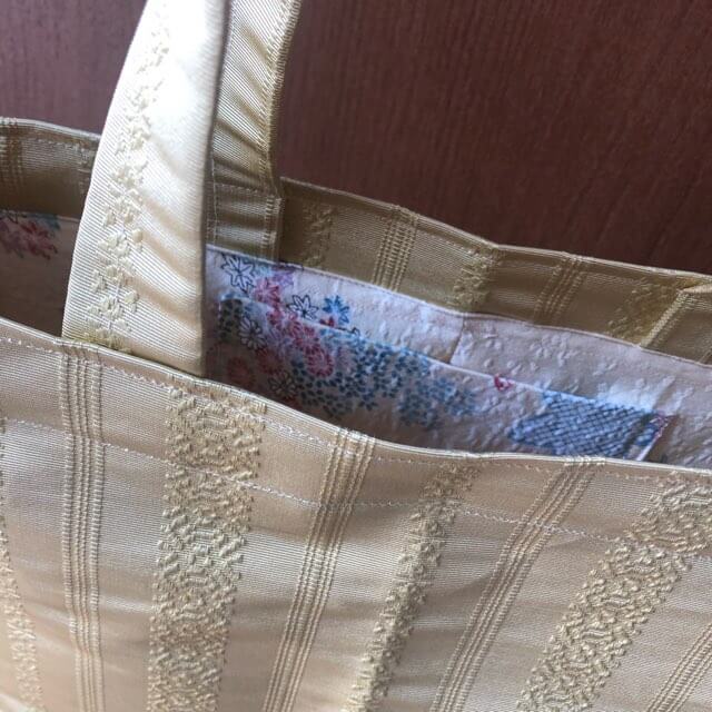 いたみが激しくて使えなくなった帯をリメイクしてバッグが完成しました。