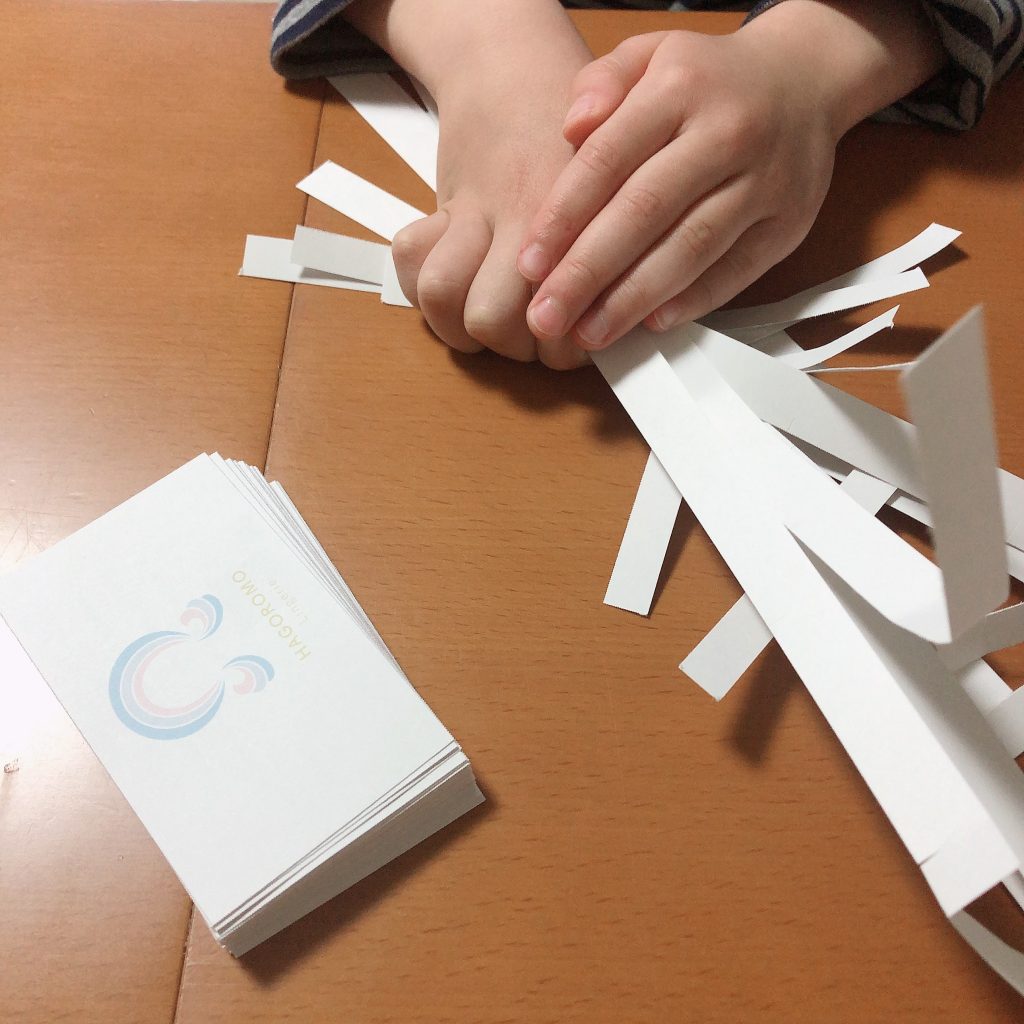 ちなみに、10枚ずつがA4サイズで裏表印刷出来るので、それを一枚ずつにする作業は末っ子くんの役目です。