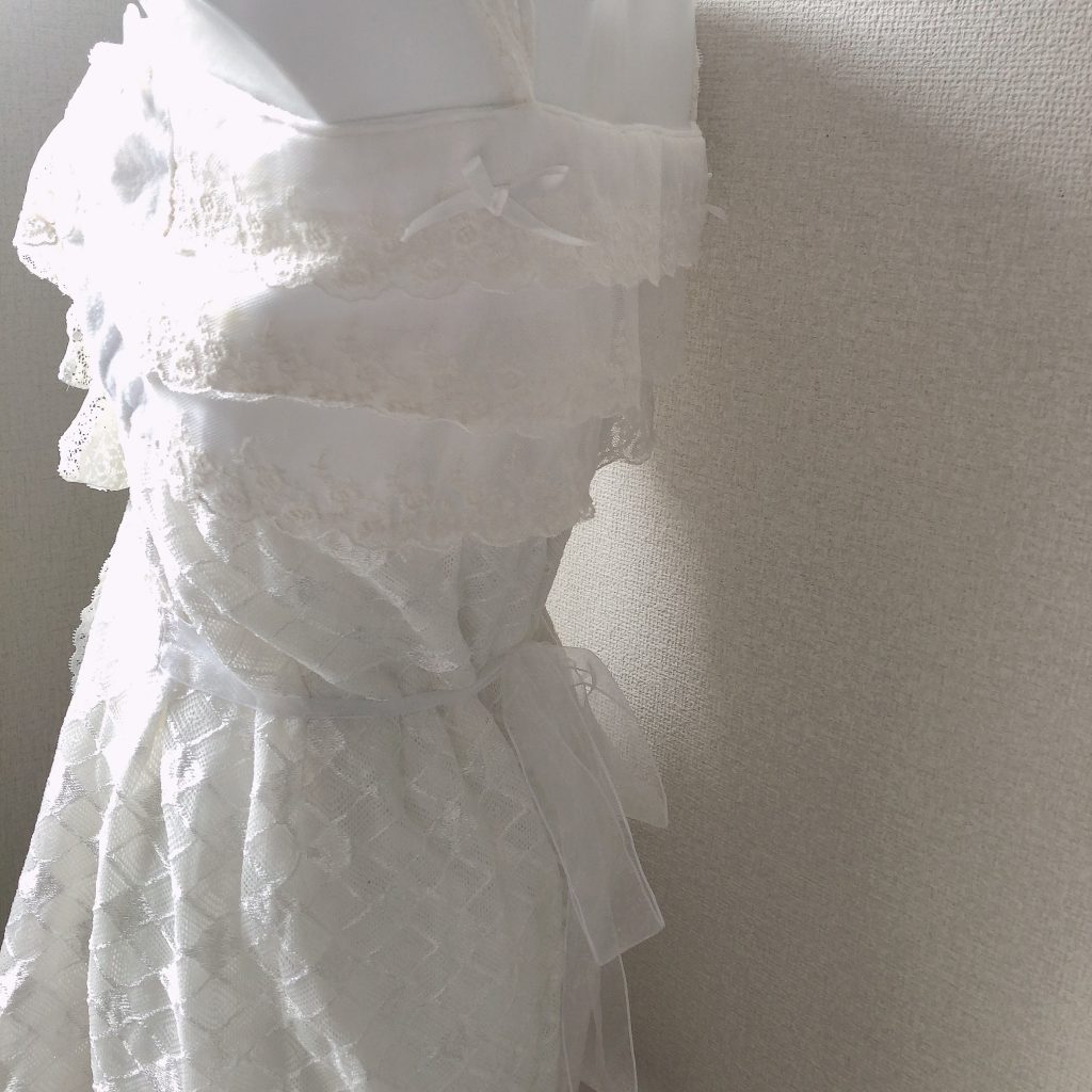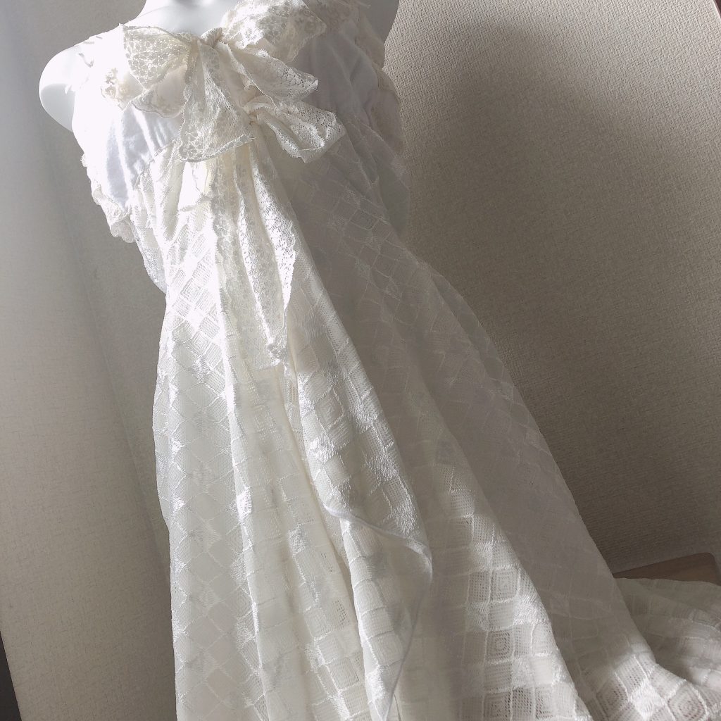 長すぎてうまく撮れないけれど、裾のレースは着分くらいのそのままを縫いつけていて、重なり部分でふんわり感を出しています。