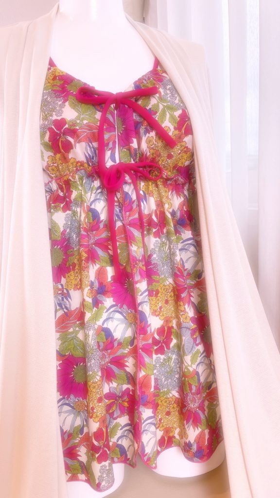 リバティの生地をおしみなく使用したキャミソールも仕上がりました。